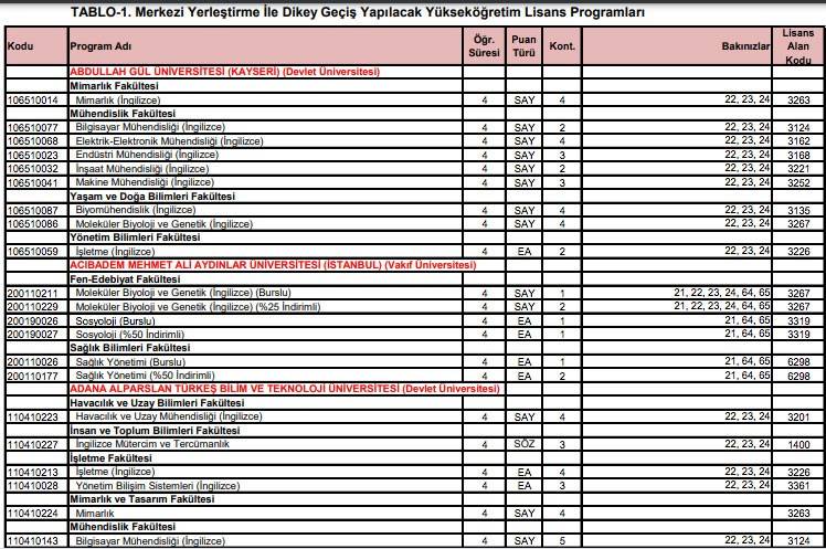 2021-DGS Tercih Bilgileri ve Tablolar için tıklayın