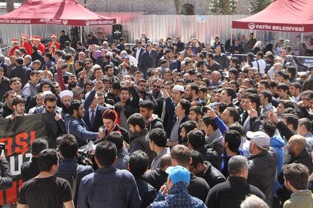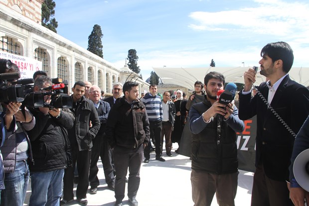 Fatih Camii’nde toplanan Türkiye Müslüman Gençliği Platformu üyesi bir grup, Cuma namazı sonrasında savcı Mehmet selim Kiraz’ın DHKP-C’li teröristler tarafından şehit edilmesini protesto etti. “Teröre Karşı Omuz Omuza” yazılı pankart açan grup, şehid savcı için dua etti.