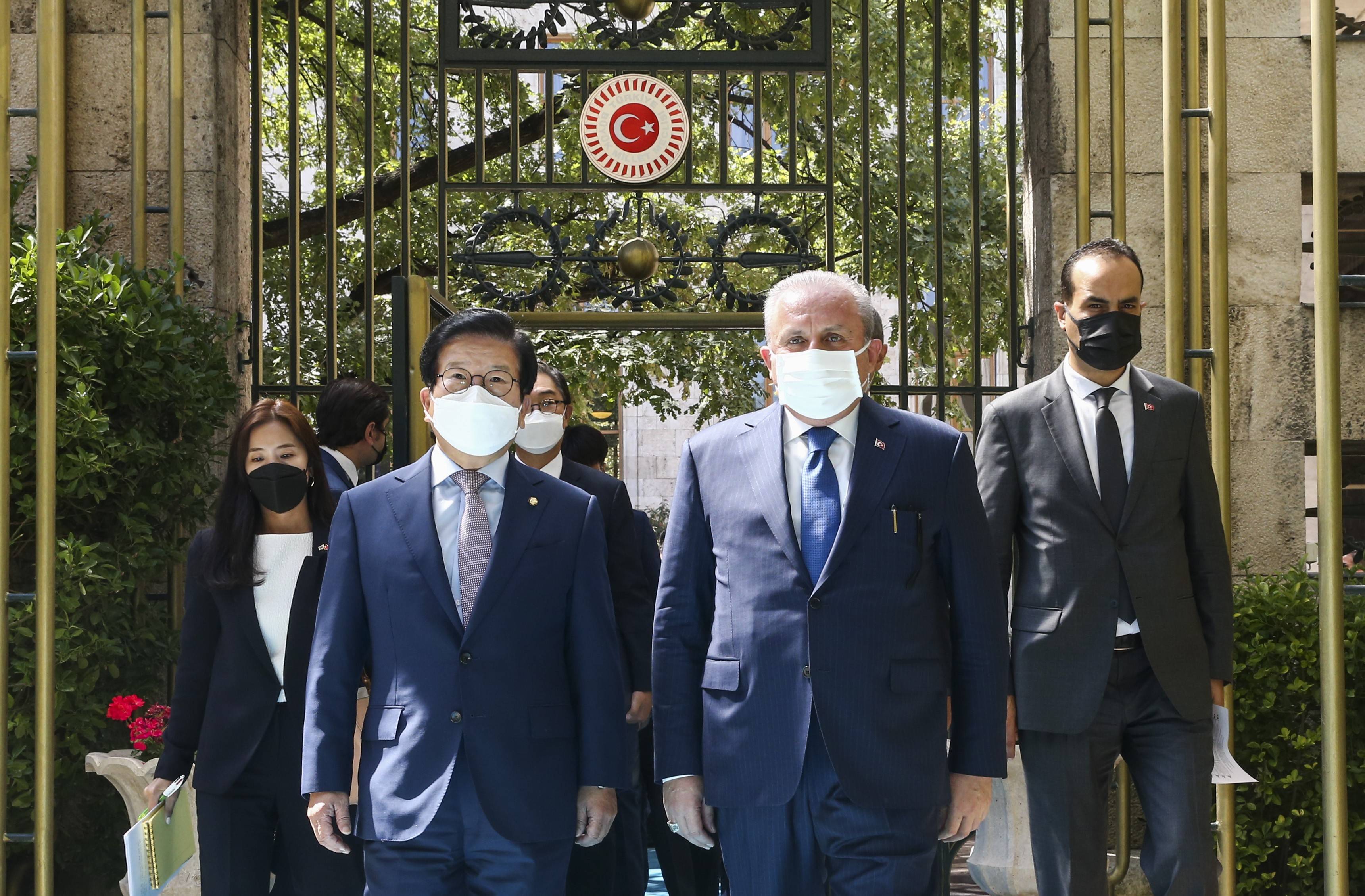 TBMM Başkanı Mustafa Şentop, Güney Kore Ulusal Meclis Başkanı Park Byeong-seug ile Meclis'te bir araya geldi.