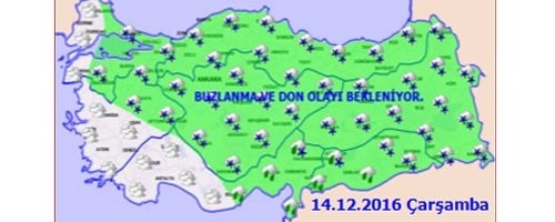 14 Aralık çarşamba günü İstanbul'da daha fazla kar yağışı bekleniyor. Aynı gün yurdun yine büyük bölümünde kar yağışı, buzlanma ve don uyarısı var.