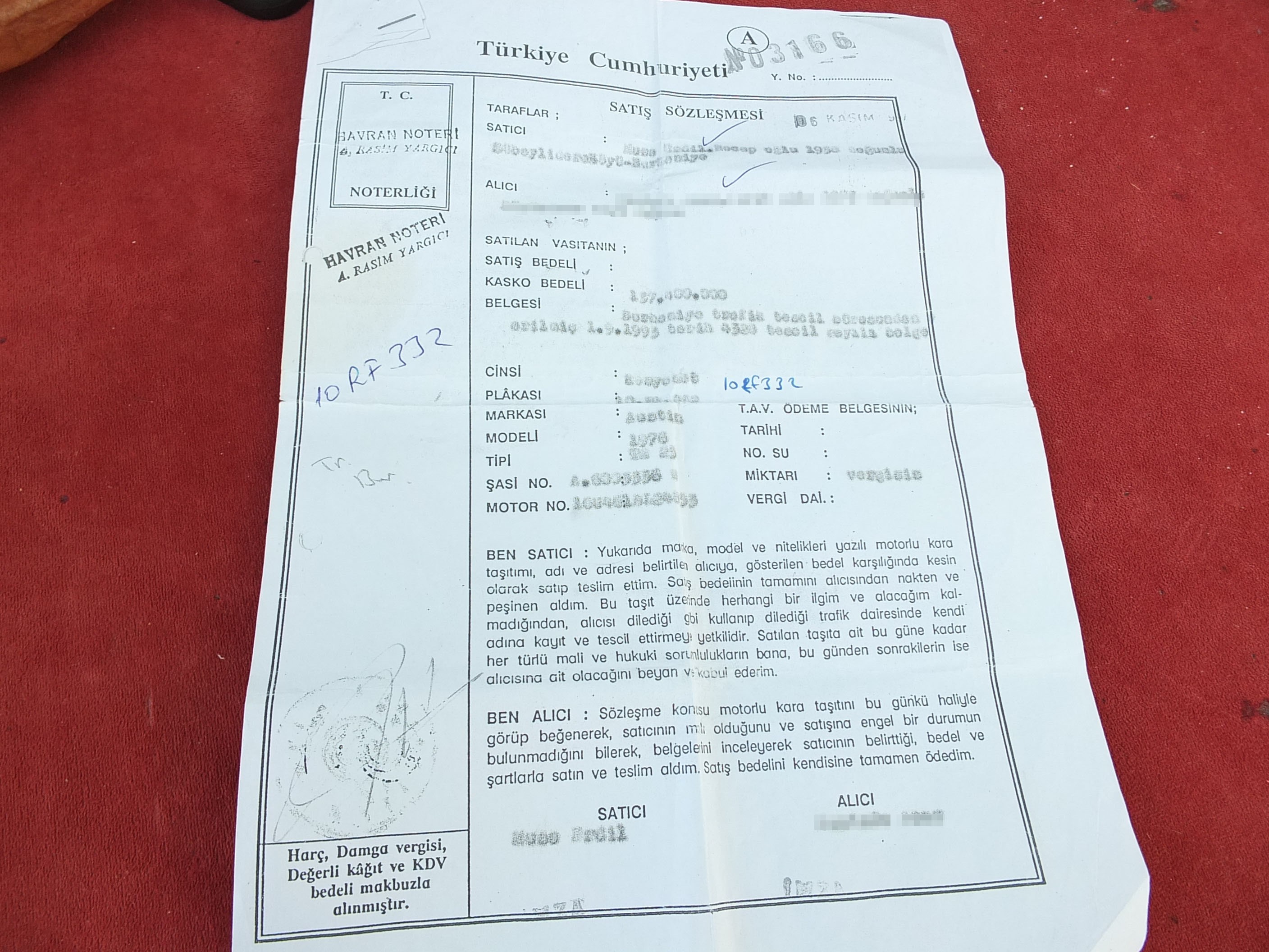 Çaresiz kaldığını anlatan 3 çocuk babası Musa Erdil, “1997 yılında 1976 model kamyonetimi noter aracılığı ile sattım. Satış sözleşmesi burada. Daha sonra, aracın hurdaya çıktığını biliyorum. Gitmediğim yer kalmadı. Başvurmadığım yer kalmadı. Bu plakalı araçla otoyollardan geçiş yapılıyor. 2018'de cezalar gelmeye başladı. İcra yoluyla cezalar beni buluyor. Geçiş için 2 bin lira civarında para ödedim. 581 lira daha var ödenecek. Ödeyecek yer bulamadığım için ödeyemiyorum. Bu sezalardan kurtulmam için başvurmadığım makam kalmadı. Traktörümü satacaktım, bundan dolayı hiçbir işlem yapamadım. Satamadım. Bu evrakların hepsi buna ait. Hepsi ile uğraşıyorum. 6 seneden beri uğraşıyorum. Üstümden sildiremedim bu aracı. Hiçbir netice alamadım. Ne noterden ne vergi dairesinden ne de Trafikten. Nereye gitmem ne yapmam gerektiğini bilmiyorum. Çok çaresiz kadım. Benim sattığım araç kamyonetti. Şimdi gelen cezalar otomobil üzerinden geliyor. Bu yüzden anlamıyorum bu işten. Bu iş için vergi dairesine gittim, notere gittim, savcılığa dilekçe yazdım. Karayollarına dilekçe yazdım. Hiçbir yerden netice alamadım. Ne yapmam gerektiğini bilmiyorum. Çaresiz kaldım” dedi.
