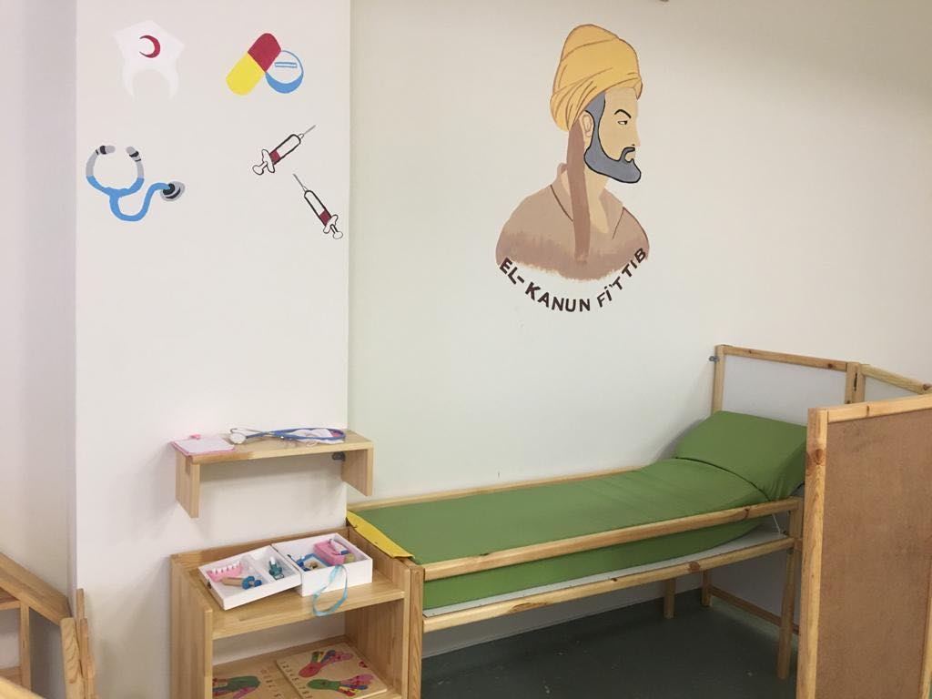 Kursta uyguladıkları eğitimin içeriğinden bahseden Seda hanım, çocukların o günün konusunu ahşap materyaller, oyunlar ve drama ile yaşayarak öğrendiklerini söylüyor. Montessori metodunun din eğitimine nasıl bir katkısı olduğunu düşünenler için örnekler veren Seçkiner, Kuran harflerini öğrenen çocukların oyun hamurları ile dokunarak, defalarca yapıp bozarak o harfi zihinlerine aldıklarından bahsediyor. Kurstaki çocuklar, peygamber kıssalarından Hz.Nuh’un hayatını ve Nuh Tufanı’nı ahşaptan yapılmış bir gemi içerisinde büyük bir ilgi ve heyecanla dinlerken, o ani sanki bizzat yaşıyorlar. Kuran ayetlerini ve ahlaki değerleri “Tartıda hile yapmayınız” yazısının asılı olduğu minyatür bir manavda oyunlar ile edinen çocuklar, İbn-i Sina gibi Müslüman bilim insanlarını da yine bu atölyede drama ile öğrenmiş oluyorlar.