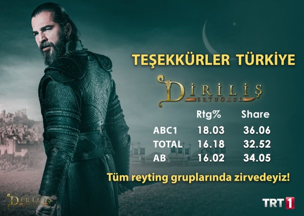 Diriliş Ertuğrul, AB puan türünde de zirvede yer aldı.