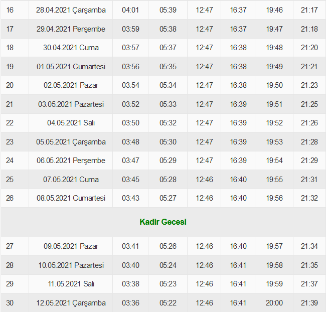 Ramazan ayı bu yıl 13 Nisan Salı günü başlayıp ve 12 Mayıs Çarşamba günü bitecek.