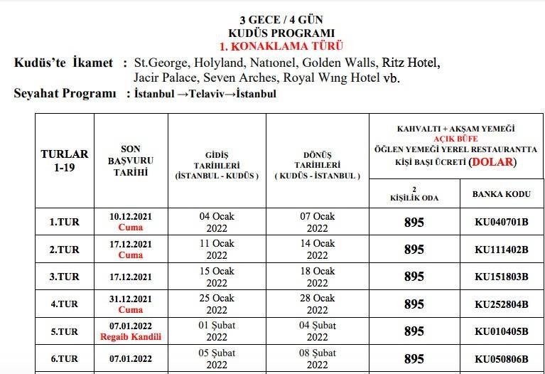2022 diyanet Kudüs tur fiyatları için tıklayın