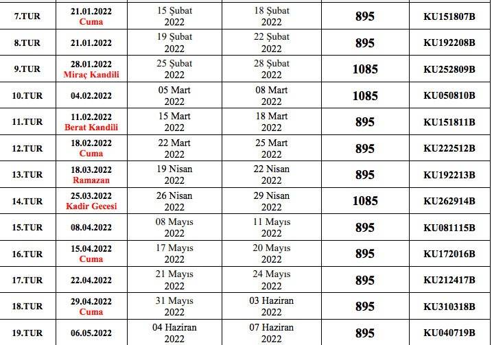 Diyanet İşleri Başkanlığının yazılı açıklamasına göre, ilk tur için son başvuru 10 Aralık 2021'e kadar yapılabilecek. 2022 yılı boyunca 37 tur düzenlenecek. "Üç gece dört gün" şeklinde gerçekleştirilecek ziyaretlerde, iki ayrı konaklama türü olacak. Her iki konaklama türünde de yolculara üç öğün yemek verilecek.