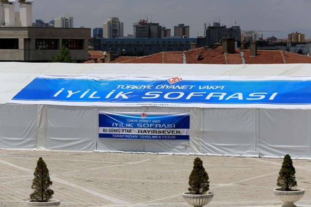 Kocatepe Camii avlusunda kurulan ve günde 2 bin 500 kişiye iftar verilecek iyilik sofrasının artık geleneksel hale geldiğini vurgulayan Bilgin, “Yurt içinde ve yurt dışında iyilik sofraları açmayı sürdürüyoruz. Bu yıl 68 ülkenin yanı sıra Türkiye’de şubelerimiz vasıtasıyla il ve ilçelerde iftar sofraları kurularak toplumun farklı kesimleri ile iyilik sofralarında bir araya geleceğiz. Kocatepe Camii Külliyesinde geçen yıl hayırseverlerimizin de katkılarıyla iyilik sofrası kurduk. Her gün 3-4 çeşit yemeğin ikram edildiği iyilik sofrasına günlük yaklaşık 2 bin 500 kişi iştirak etti. Ramazan ayı boyunca yaklaşık 75 bin kişiye iftar yemeği verildi.” Dedi.