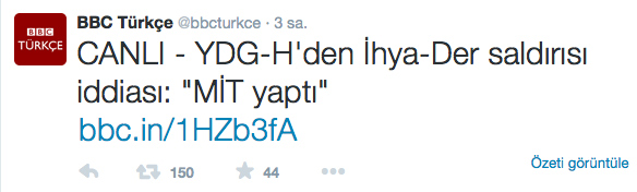 İngiliz yayın kuruluşu BBC’nin Türkçe servisi, ortaya atılan bu iddialar üzerine yaptığı haberde bir skandala imza attı. BBC, YDGH’nin attığı tweet’i referans kabul ederek “YDGH’den İhya Der açıklaması. MİT yaptı” ifadelerini kullandı. Haberini PKK’nın açıklaması üzerine bina eden BBC’nin örgüt elemanlarını sivil toplum kuruluşu gibi sunması sosyal medyada büyük tepki çekti.(haberiyakala.com)