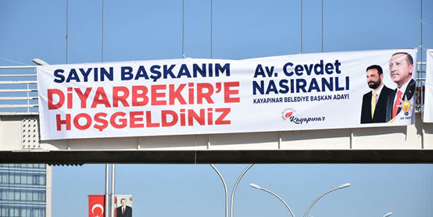 Türkiye Cumhurbaşkanı ve AK Parti Genel Başkanı Recep Tayyip Erdoğan'ın ziyareti dolayısıyla Diyarbakır'da, Türkçe ve Kürtçe "Diyarbekir'e hoş geldiniz." yazılı pankartlar asıldı.