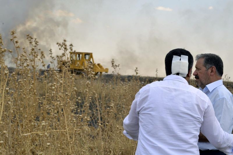 Diyarbakır'da ’Kent Ormanı’ olarak ayrılan alanda fidan dikimine giden HDP milletvekillerine arazinin kendilerine ait olduğunu öne süren gruplar taş atıp, havaya rastgele ateş açtı.