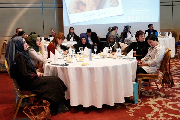 Sunum sonrası merak ettikleri sorulara cevap alan diyetisyenlere, SLIMINI markalı unlardan hazırlanan etliekmek, su böreği, baklava, kurabiye ve ekmekler ikram edildi.