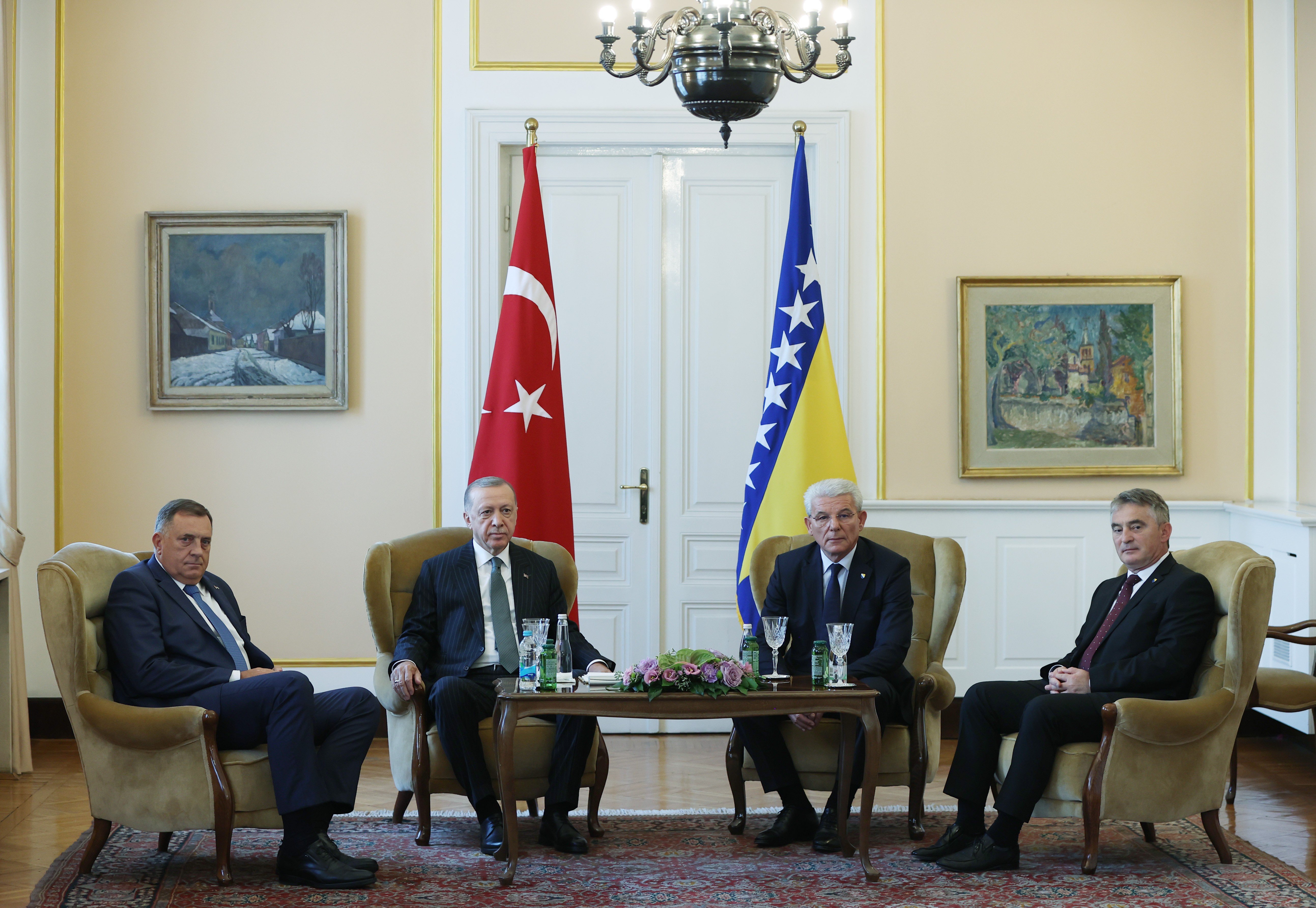 Cumhurbaşkanı Recep Tayyip Erdoğan, resmi temaslarda bulunmak üzere Bosna Hersek'in başkenti Saraybosna'ya geldi. Erdoğan, Bosna-Hersek Devlet Başkanlığı Konseyi Başkanı Şefik Caferoviç, konsey üyeleri Zeljko Komsic ve Milorad Dodik ile bir araya geldi.