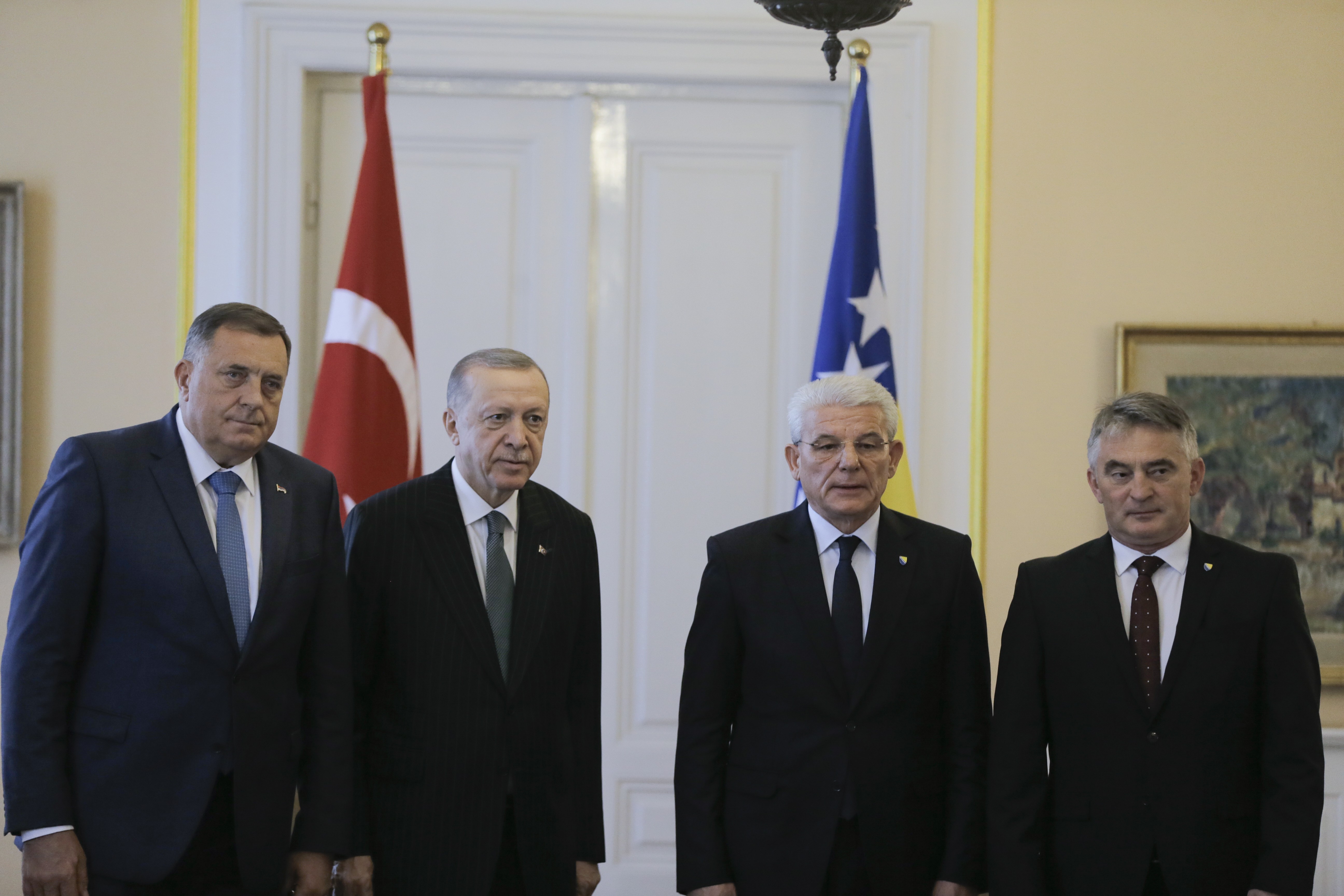 Basın toplantısında konuşan Bosna-Hersek Devlet Konseyi Başkanlığı Üyesi Milorad Dodik, "Hiçbir liderle Erdoğan ile olduğu kadar ortak anlayışa sahip olamadık. Üçümüz hep kavga halindeyizdir. Burada dostane bir ortam var. Bu şunu gösteriyor, Erdoğan'a saygı var. Avrupa Birliği sorunlarımızı çözemiyor. Bizim de AB'ye girme konusunda hevesimiz azaldı. Bizim bölgemizde lider çok azdır. Dünyanın en büyük liderlerinden biri Erdoğan'dır." dedi.
