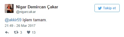 Akkır, daha sonra yine hesabından, "Hocam gerçekten mi şaka değil, değil mi? Hocam Allah sizden razı olsun, kredilerimiz yatar yatmaz hemen geri vereceğiz." mesajını paylaştı.