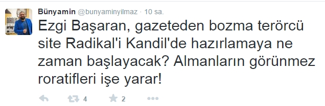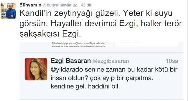 Sosyal medyada her türlü pisliğin içerisinden zeytinyağı gibi çıkmayı bilen Ezgi Başaran’a gazeteci Bünyamin Yılmaz’dan da tokat gibi bir cevap geldi;