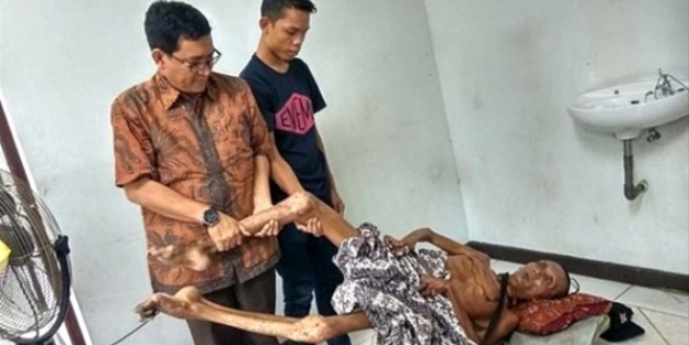 Endonezya'da Mas Tazul Munir, 24 yıl önce geçirdiği bir kaza sonucunda vücudu taşlaştı.