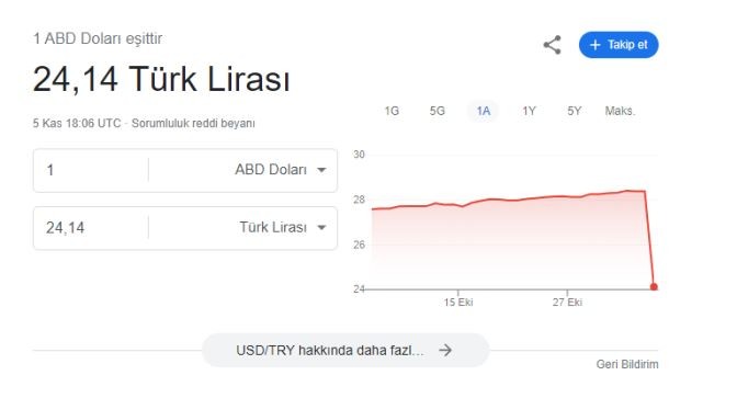 Dolar kuru Google'da 24,14 TL olarak görüntüleniyor. Ekrana bakan yatırımcılar büyük şok yaşadı.