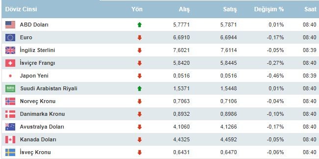 Dün dolar/TL, yüzde 1,4 değer kaybederek 5,7934 ile yaklaşık son 2 ayın en düşük seviyesine geriledi Yeni haftanın ilk günü15 Ekim 2018 sabahında dolar kuru 5,8567 lira seviyesinden başlamıştı. Saat 09.12 itibariyle euro 6,7705 lira, sterlin ise 7,6733 liradan işleme başlamıştı.