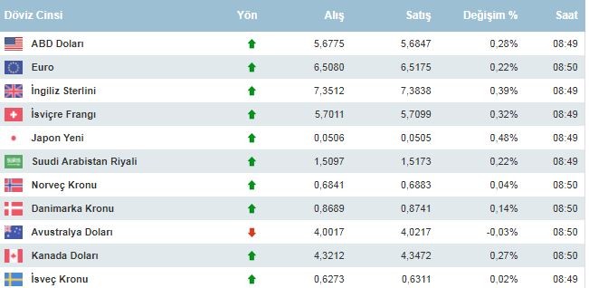 Dolar - euro kaç TL? Dolar kuru en son ne kadar oldu? Bankalararası piyasada döviz kurlarında son durum. Dolar haftanın ikinci gününe yani 23 Ekim Salı gününe nasıl başladı? Dolar/TL alış 5,67 satış 5.68 seviyesinin altında dalgalı seyrediyor. Bankalararası piyasada dolar/TL, 5,67 civarında işlem görüyor. Kur dün 5,69'un üzerini görmüştü. Euro/TL de alış 6,50 satış ise 6,51 üzerinde hareket ediyor.