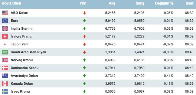 Dün 5.5236 ile kapanan dolar/TL, görüşmelerde Washington yönetiminin baskısına rağmen iyimser beklentiyle 13 Şubat günü 5.24'lü seviyelerden el değiştiriyor. Euro/TL ise 5.95 etrafında dalgalanıyor. Döviz kurlarındaki düşüşün bir diğer nedeni de petrol fiyatlarındaki yükselişin bir bölümü önemli yer altı kaynaklarına sahip gelişen ülkelere pozitif etki yapması. Dolar - euro kaç TL? Dolar kuru en son ne kadar oldu? Bankalararası piyasada döviz kurlarında son durum. Dolar 5,24 TL'den işlem görüyor. Euro/TL ise 5,94 TL’de yer alıyor.