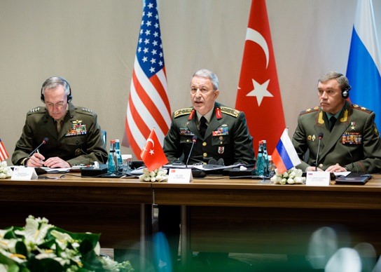 TSK'dan bugün yapılan yapılan yazılı açıklamada, "Genelkurmay Başkanı Orgeneral Hulusi Akar'ın ev sahipliğinde, ABD Genelkurmay Başkanı Orgeneral Joseph Francis Dunford ve Rusya Federasyonu Genelkurmay Başkanı Orgeneral Valery Vasilyeviç Gerasimov'un katılımıyla Antalya'da üçlü bir toplantı düzenlenmiştir. Toplantıda, Suriye ve Irak başta olmak üzere bölgedeki güvenlikle ilgili ortak konular görüşülmektedir" denildi.