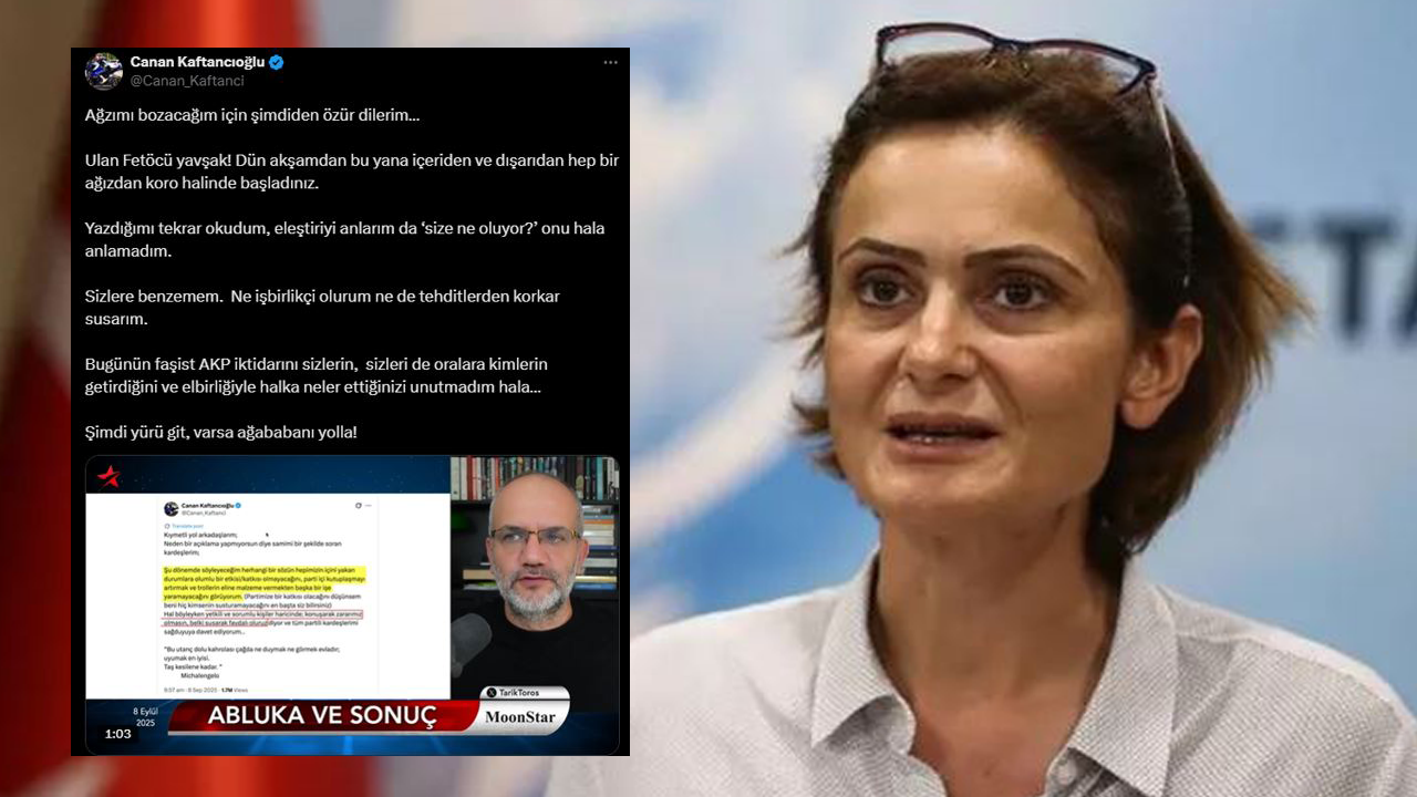 Eşiyle yediği domuzun kemiklerini sosyal medyada paylaştıktan sonra ismi ‘Domuzcu Başkan’a çıkan CHP’nin eski İstanbul İl Başkanı Canan Kaftancıoğlu, kayyum olarak atanan Gürsel Tekin hakkında yaptığı paylaşımı eleştiren FETÖ firarisi Tarık Toros’a sosyal medya üzerinden sert tepki gösterdi. Ağzını bozan Kaftancıoğlu, Toros’a "Ulan FETÖ'cü yavşak" diye hitap etti.