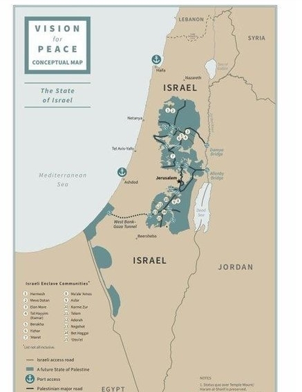 ABD Başkanı Trump dün açıkladığı sözde "Yüzyılın Barış Planı"nın ardından Twitter adresinden Kudüs'ün ve Filistin topraklarının nasıl işgal edileceğini gösteren haritayı da paylaştı.