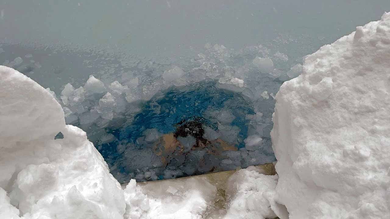 Dondurucu soğuğa meydan okudu! Eksi 10 derecede buz dolu havuza böyle atladı