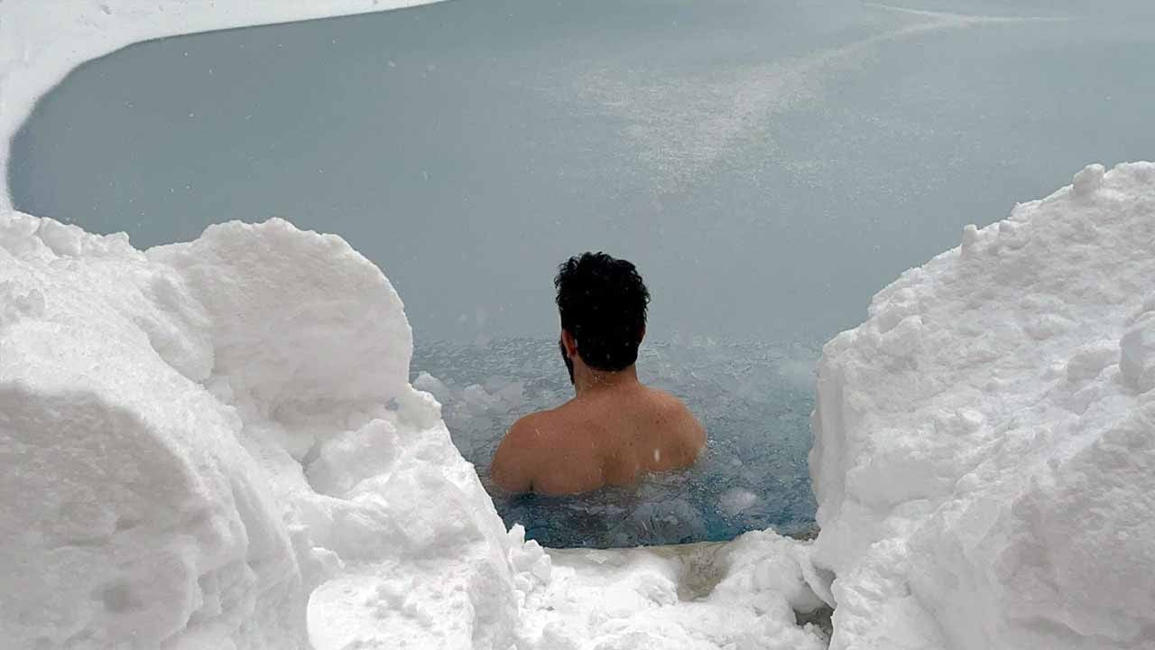 Bolu Dağı'nda günlerdir kar yağışı etkili olurken, hava sıcaklığı da sıfırın altında 10 dereceye kadar düştü. Tatil için kente gelen ve Bolu Dağı bölgesinde bir otelde konaklayan Eren Biri, soğuk havaya aldırış etmeden havuza girdi.