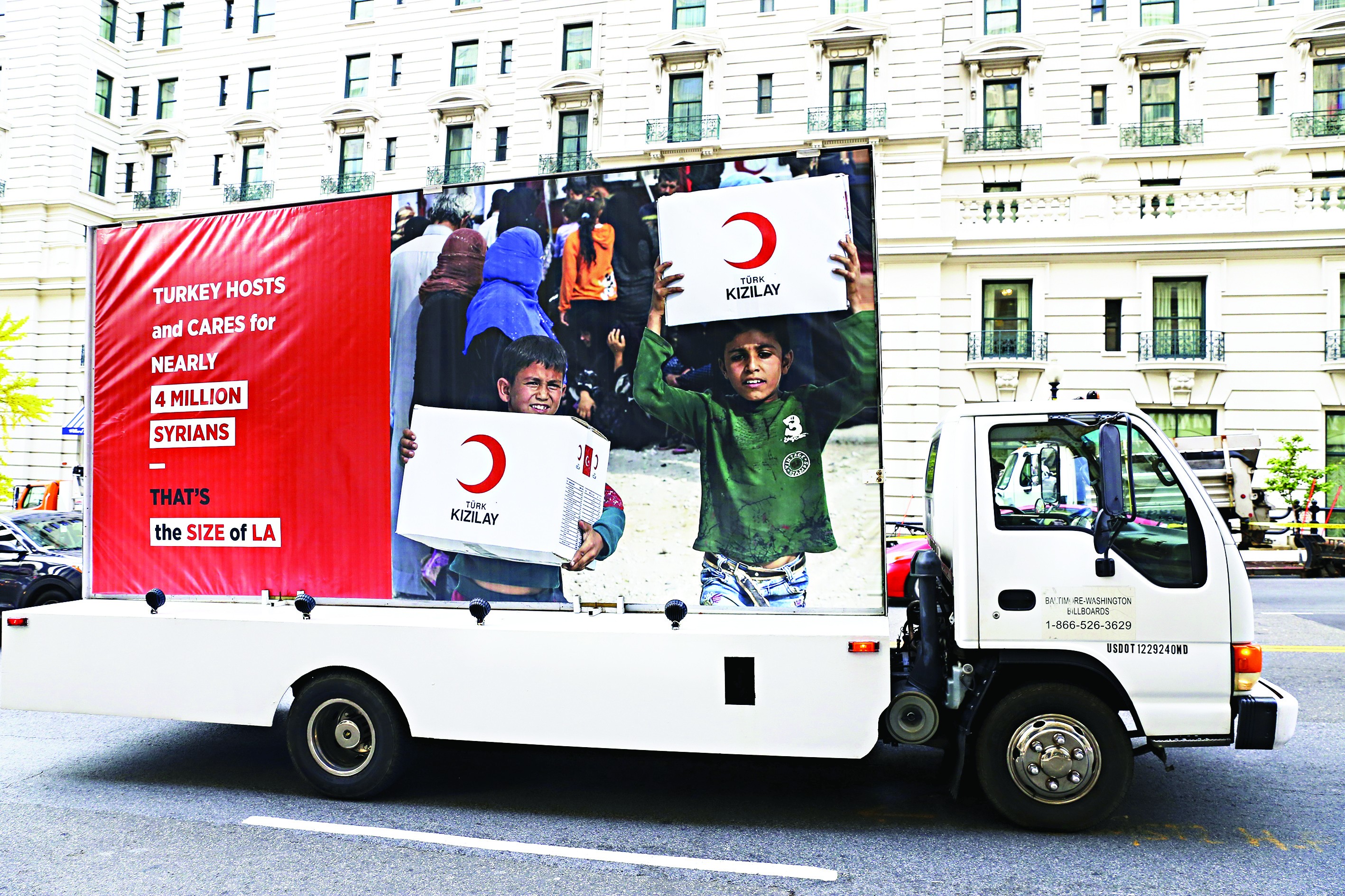 Bu arada, Cumhurbaşkanı Erdoğan’ın iki günlük ziyareti boyunca Washington’da, Türkiye’nin DEAŞ ile mücadelesi şehrin farklı yerlerine konulan dijital ekranlı, LED görüntülü 10 araçla anlatıldı. Washington sokaklarında Türkiye’nin Suriyeli sığınmacılara verdiği destek de anlatıldı. Erdoğan’ın kalacağı otelin önünde ve yakınlarında yoğun güvenlik önlemleri alındı.