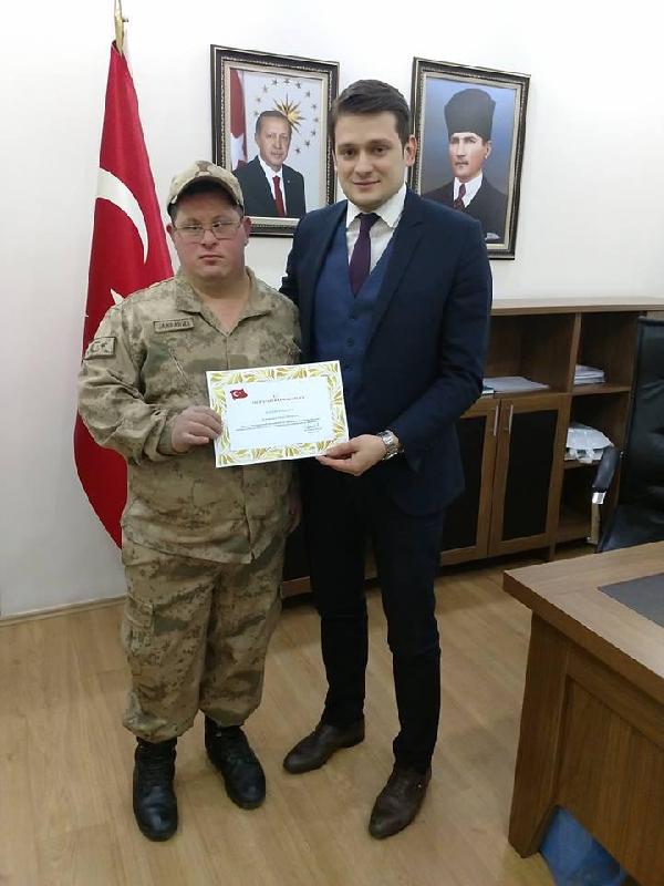 Down sendromlu Faruk Tomurcuk, ailesiyle birlikte, hayali kuruduğu ve çok istediği Jandarma Komutanlığını ziyaret etmek için müracaatta bulundu. Talep üzerine İlçe Jandarma Komutanlığı’nca, askerlik hayali kuran Faruk Tomurcuk için temsili yemin töreni programı düzenlendi. İlçe Kaymakamı Ali Osman Bulat, İlçe Belediye Başkanı Halil Akgül ve İlçe Emniyet Amiri İbrahim Özden'in de yer aldığı törende, jandarma komutanlığına gelen Faruk Tomucuk ile ailesi duygu dolu anlar yaşadı. Saygı duruşu ve İstiklal Marşı ile başlayan törende askeri kamuflaj da giyen Tomurcuk, masa üzerinde Türk bayrağı ve silaha el koyarak yemin etti. Bir günlüğüne de olsa asker olan Tomucuk'a katılımcılar tarafından takdir ve hizmet belgesi de verildi.