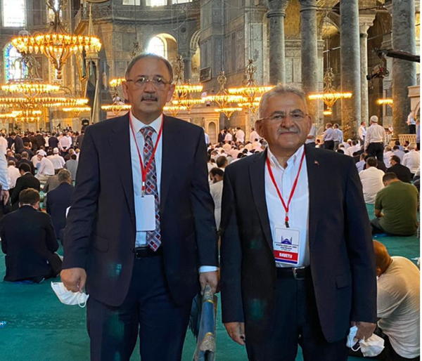 AK Parti Genel Başkan Yardımcısı ve Yerel Yönetimler Başkanı Mehmet Özhaseki, "Ayasofya Camii, büyük bir katılımla aslına rücu etti, yeniden ibadete açıldı. Ayasofya bizim gençlik hayalimiz, mefkuremizdi. Burası insanlık mirası. Fetih geleneğine göre Camii olmuştu. Bir süre müze kaldı. Şimdi Danıştay'ın kararı ve Sayın Cumhurbaşkanımızın iradeleriyle yeniden mümin kalplere ve secdelere kapılarını açtı." dedi.