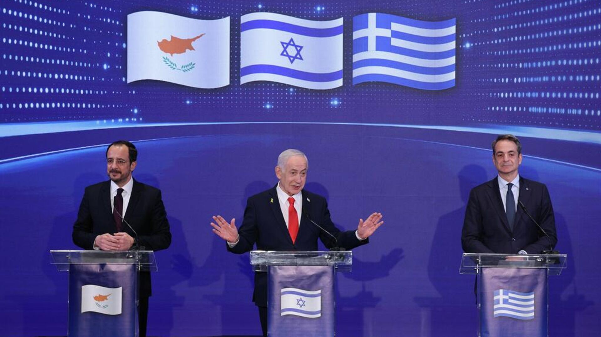 İsrail Başbakanı Netanyahu, Yunanistan Başbakanı Miçotakis ve Güney Kıbrıs Rum Yönetimli lideri Nikos Hristodulidis, 22 Aralık'ta Batı Kudüs'te düzenlenen üçlü zirvede bir araya gelmişti.