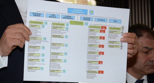 Kanber, İYİ Parti, CHP ve HDP'nin Balıkesir Büyükşehir Belediyesi'ni paylaştıklarını gösteren bir şemayı basınla paylaştı.
