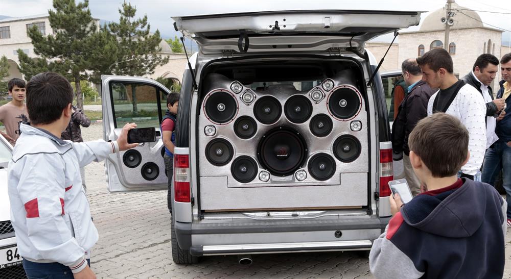 Kütahya'da modifiye otomobil sahiplerine yönelik düzenlenen etkinliğe katılan Volkan ve arkadaşı Demir'in hafif ticari araçlarının bagaj kısmı ve kapı içlerine yerleştirilmiş 20 hoparlörden oluşan ses sistemi, vatandaşların yoğun ilgisiyle karşılaştı.