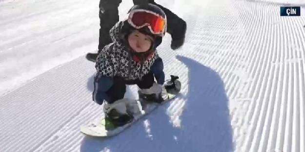 Çinli bebeğin kayak yaptığı o anlar sosyal medyada binlerce kez paylaşıldı.