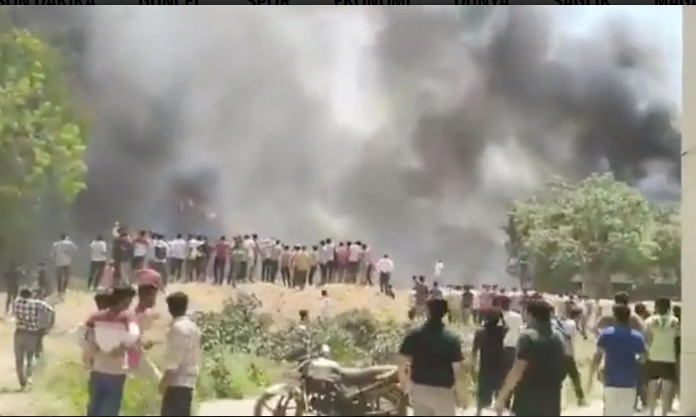 Hindistan'dan gelen görüntülerde uçağın enkazının yandığı ve havaalanı yakınlarında gökyüzüne yoğun siyah dumanların yükseldiği görüldü. Ayrıca sedyelerle taşınan ve ambulanslarla götürülen insanların görüntüleri de gösterildi.