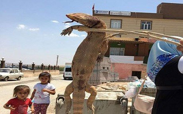 Bölgede inceleme yapan yetkililer, söz konusu hayvanın nesli tükenme tehlikesi altındaki dev kertenkele ailesinden olan "çöl varanı" olduğunu tespit etti.
