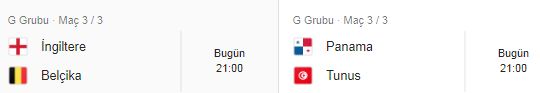 Dünya Kupası 2018 grup maçları G grubu İngiltere Belçika Tunus Panama puan durumu