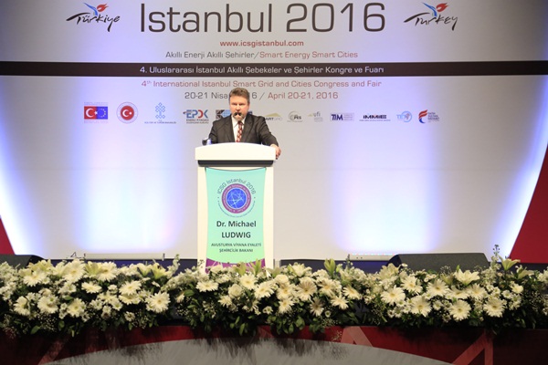 Viyana Şehircilik Bakanı Dr. Michael Ludwig; Viyana Avusturya içinde bağımsız bir yönetim olmakla birlikte akıllı şehirlere oldukça yatırım yapan bir ülke. 1990 yıllarında dünya çapında 10 kadar mega şehir varken 2015 yılında ise bu sayı 28’e ulaştı. Öngörülere göre bu sayının 2030 yılında 41 mega şehire ulaşması bekleniyor. Akılı şehirler kavramı şehirlerin karşı karşıya kaldıkları, birçok zorluğu çözmek için oldukça önemli. İnsanların yaşam kalitelerini idame ettirmeliyiz. Viyana’nın akıllı şehirler bağlamında önceliği budur. Sosyal konu ve alt yapı çalışmalarında bu görülüyor. Viyana ve Fedaral Hükümet Başkanlığı arasında bir mütakabat imzalandı. Viyana böylece akıllı şehirler içerisinde Avrupa’da marka şehir haline gelmeyi hedefliyor. İklimin korunması bizim için de çok önemli. Akıllı şehir, akıllı konut projelerimiz devam ediyor. Viyana 200.000 konuta sahip. Bu noktada vatandaşlarımıza kira yardımı da yapıyoruz. Gerçekleştirdiğimiz bir şehircilik projemiz Avrupa’nın en önemli konut projelerinden biri. Ulaştırma, alt yapı, yayalar için yürüyüş yolları, yeşil alanları bölgeyi cazip kılıyor. Gerçekleştirilen bu kongrenin akıllı şebekeler ve şehirler alanında küresel zorlukların analiz edilmesi açısından çok faydalı olacağına inanıyorum.