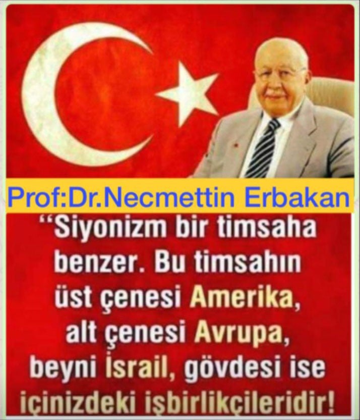 Merhum Erbakan, “Siyonizm bir timsaha benzer. Bu timsahın üst çenesi Amerika, alt çenesi Avrupa, beyni İsrail, gövdesi ise içinizdeki işbirlikçilerdir” demişti.