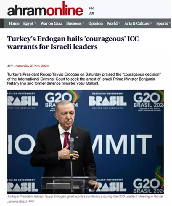Middle East Eye, 'Erdoğan Uluslararası Ceza Mahkemesi'nin İsrailli liderler için aldığı 'cesur' tutuklama emirlerini selamlıyor' başlığıyla okurlarının karşısına çıktı.