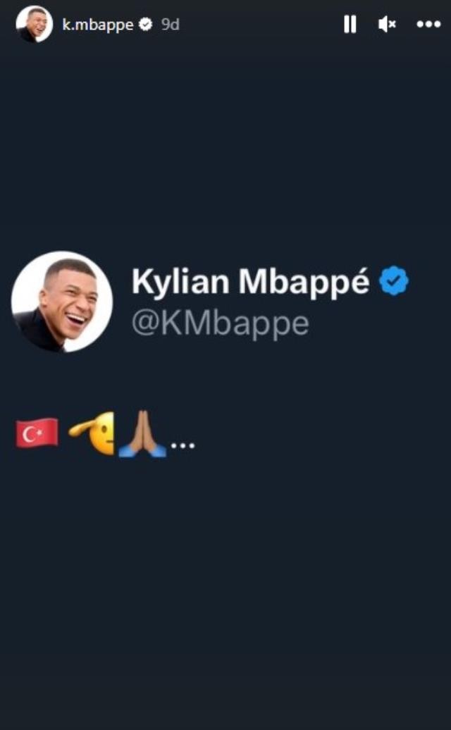 "Omuz omuza" kampanyasına bağlanarak elinden gelen her şeyi yapmaya hazır olduğunu belirten Mbappe, kampanyadan ayrıldıktan sonra resmi sosyal medya hesabından bir de paylaşım yaparak ülkemize destek oldu.