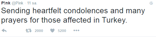 Türkiye'deki saldırıdan etkilenenlere en içten taziyelerimi ve dualarımı gönderiyorum.
