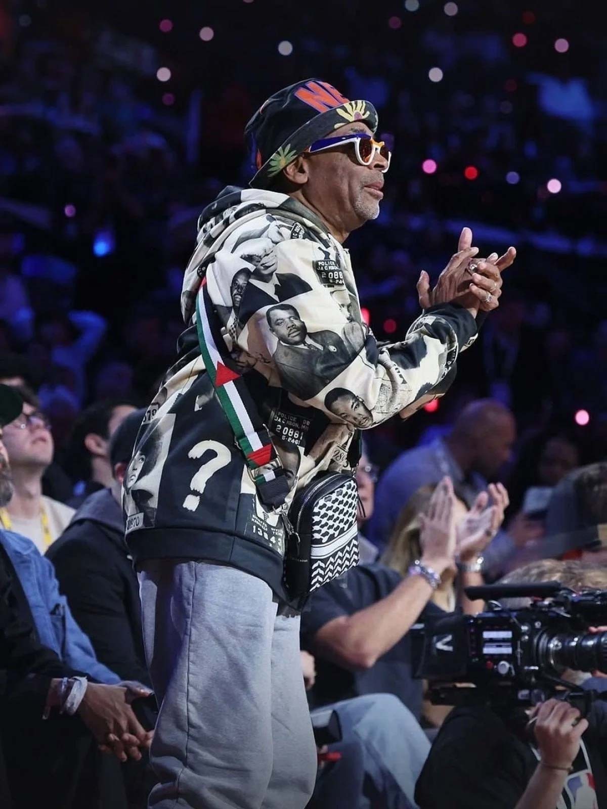Ünlü film yönetmeni Spike Lee, NBA maçında Filistin bayrağının yer aldığı çanta takarak soykırım altındaki mazlumlara destek verdi.