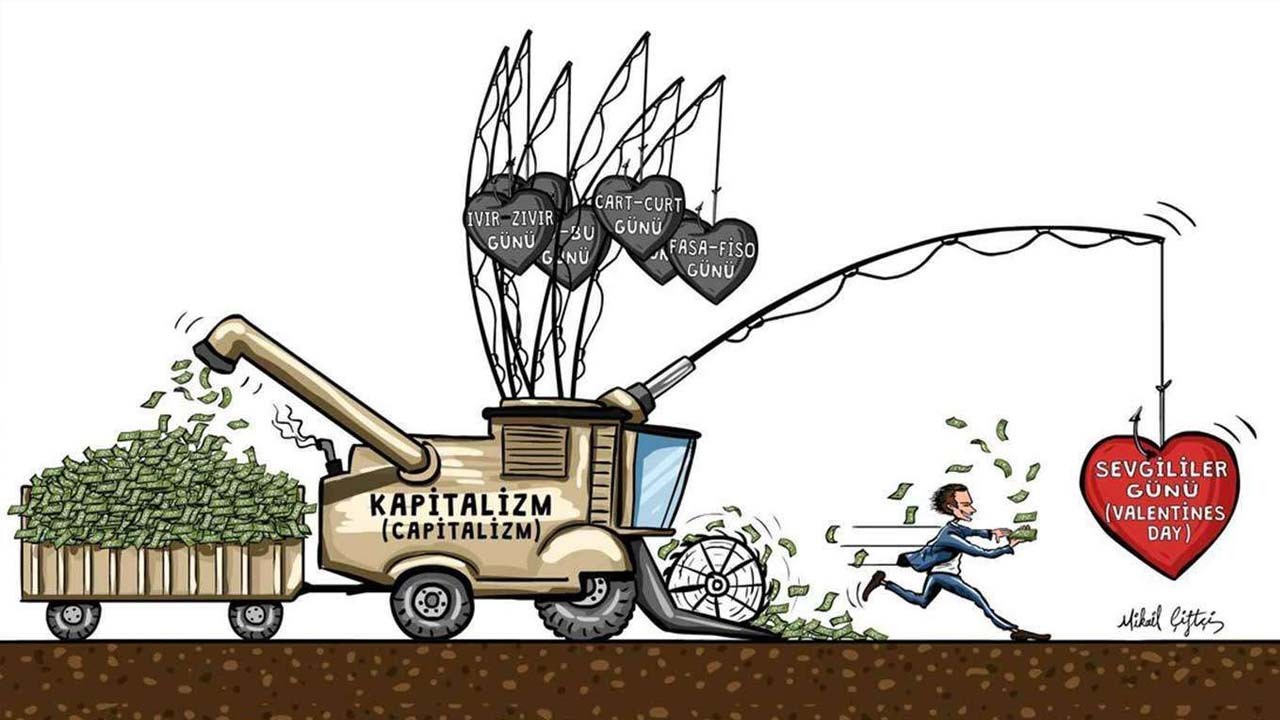 Dünyanın dört bir yanında milyonlar bir lokma ekmeğin hesabını yaparken, ABD’de “Sevgililer Günü” adı altında 29,1 milyar dolarlık harcama yapılacak olması, sevgi ambalajıyla büyütülen tüketim düzeninin geldiği noktayı gözler önüne serdi.