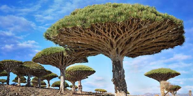 Yemen’de yetişen bu ağaçlar oldukça garip görünüşe sahiptirler ve ağacın öz suyunun koyu kırmızı olması nedeniyle de ejderha kanı ismini almışlardır.