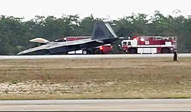 Amerikan hava sahasının korunmasının öncüsü konumundaki F-22, uçuş sırasında belirtilmeyen bir acil durum yaşadı ve üsse iniş yapmaya karar verdi. Ancak uçak üsse teker koyduktan sonra ön iniş takımında yaşanan sorun nedeniyle burnu yere çakıldı.