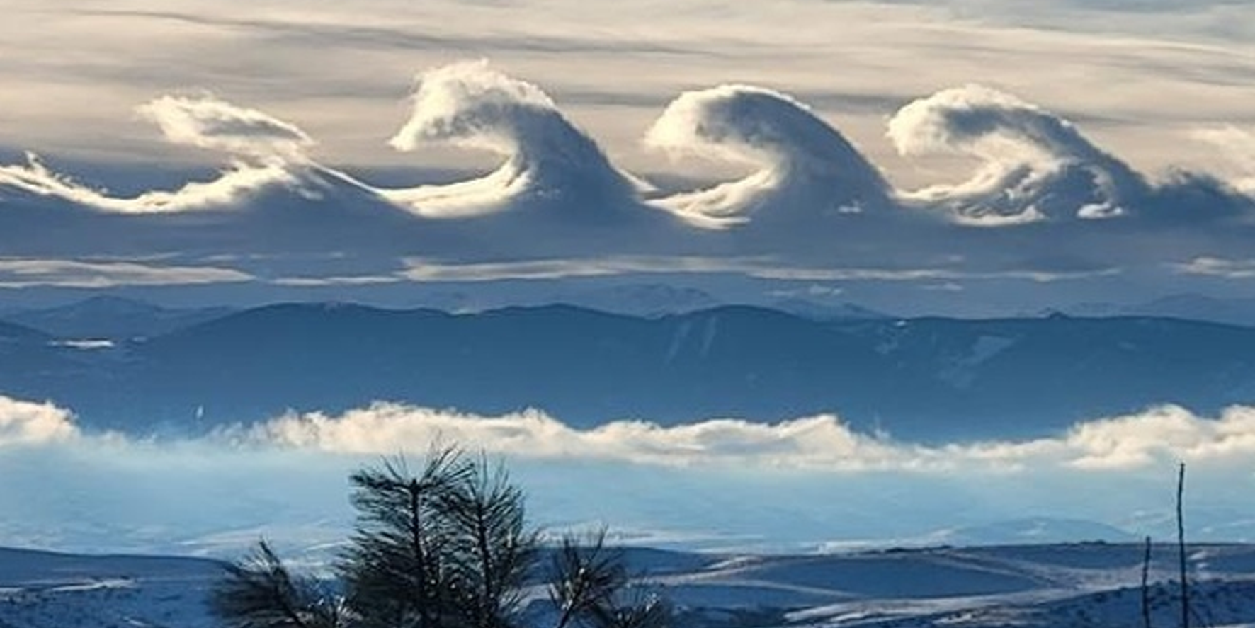 Sheridan şehrinde Bighorn Dağları'nın zirvesinin üzerinde görülen Dalgalı fenomen, Kelvin-Helmholtz istikrarsızlığı olarak biliniyor. Fenomen, Daha hızlı bir hava akımı aşağıda yükselen havanın üzerinde hareket ettiğinde oluşuyor.