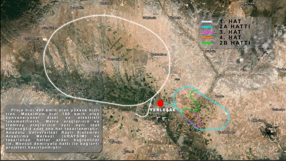 Ulaştırma Denizcilik ve Haberleşme Bakanlığının “Ulaşan ve Erişen Türkiye - 2013" dokümanında da yer alan projenin raylı sistemler alanında yürütülecek birçok Ar-Ge faaliyeti ile birlikte, çeken ve çekilen araçların test ve sertifikasyonuna yönelik olarak, Avrupa'da ilk defa saatte 400 kilometre hızda seyreden Yüksek Hızlı Trenlerin testlerinin yapılabileceği yaklaşık 50 kilometre uzunluğunda bir test yolunun yapımı gerçekleştirilmiş olacak. Ayrıca, saatte 180 kilometre hıza erişilebilen konvansiyonel demiryolu araçları için bir test yolunun yapımı ve bu yolda da Türk Cumhuriyetleri ve Rusya Federasyonu'na yönelik çeken ve çekilen araçların testleri ve şehir içi raylı taşımacılık araçlarının testlerine yönelik olarak saatte 100 kilometre hızlara erişilebilecek bir test yolu da yapılmış olacak. Proje ile ayrıca, çeken ve çekilen araçların statik, dinamik ve elektromekanik test, sertifikasyonu ve AR-GE'si için atölye ve laboratuvarların kurulması, raylı sistemler alanında bilim adamları, araştırmacılar, test ve sertifikasyon personeli yetiştirilmesi ve Eskişehir'de bir eğitim ve sosyal tesisleriyle birlikte raylı sistemler alanında bir kampüs kurulması planlanıyor.